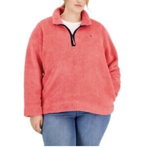 Tommy Hilfiger Sherpa 1/4-Zip Pullover Jacket Women's 2XL Pink Stand Collar