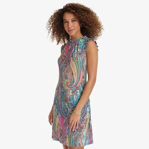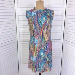 Tommy Hilfiger Shift Mini Dress Size 10 Paisley Bell Sleeve