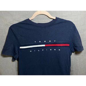 Tommy Hilfiger Shirt Adult Extra Small Blue Spell Out Flag Pullover Tee Mens