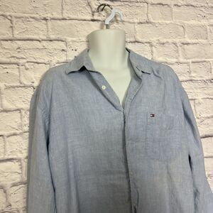 Tommy Hilfiger Shirt Blue XL Mens Long Sleeve Collared Small Logo Light Wash A