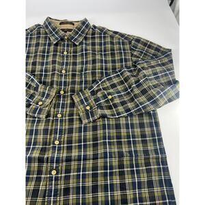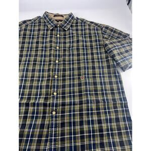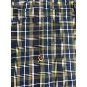 Tommy Hilfiger Shirt Men Extra Large Green Blue Checkered Button Up Work Career