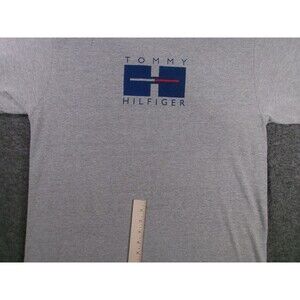 Tommy Hilfiger Shirt Men Large Gray Classic Logo Graphic Tee Crewneck Causal Y2K
