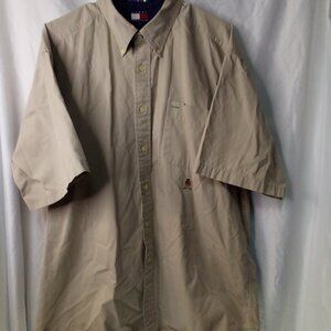 Tommy Hilfiger Shirt Men XL Button Down Short Sleeve Pocket Tan