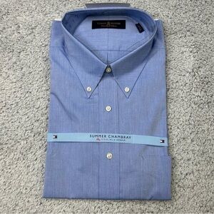 Tommy Hilfiger Shirt Mens 17.5 Neck Button Up Dress Office Work Business Meeting