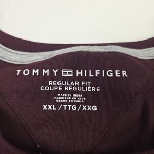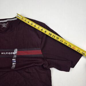 Tommy Hilfiger Shirt Mens 2XL Burgundy Regular Fit Stripe Logo Crewneck Tee