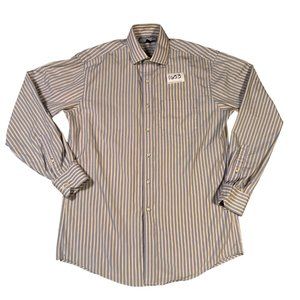 Tommy Hilfiger Shirt Men's Button Up Long Sleeve Striped Blue Yellow Medium 15.5