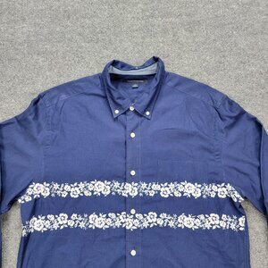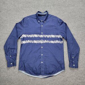 Tommy Hilfiger Shirt Mens Large Blue Floral Button Down Long Sleeve Preppy