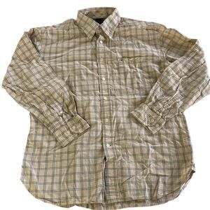 Tommy Hilfiger Shirt Mens Large Yellow Check Windowpane Grid Button Down Cotton