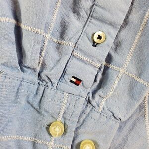 Tommy Hilfiger Shirt Mens Large Blue Square Stitch Custom Fit Button Up