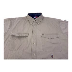 Tommy Hilfiger Shirt Mens Medium Khaki Button Down Oxford Crest Streetwear Y2K