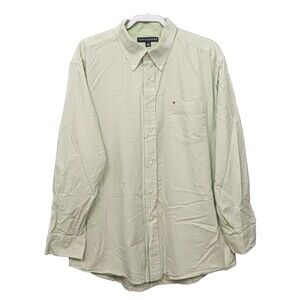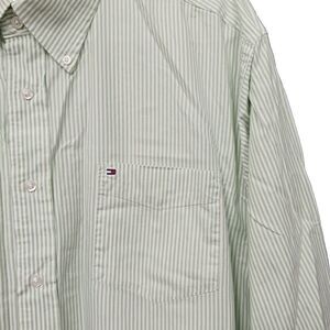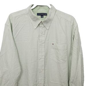 Tommy Hilfiger Shirt Mens XL Green White Stripes Button Up Long Sleeve Preppy