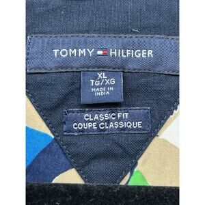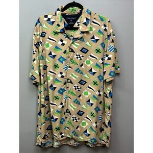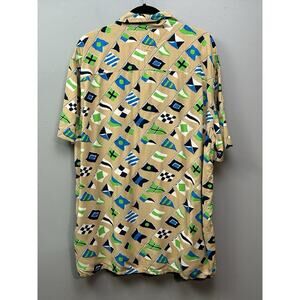 Tommy Hilfiger Shirt Mens XL Short Sleeve Camp Collar Button Nautical Flags Tan