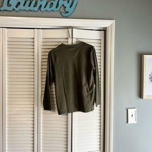 Tommy Hilfiger Shirt SZ MED (12/14) NWT. Measures 23” in length from shoulder to bottom of hem. Bust measures 17” from armpit to armpit laying flat. Olive Green in Color. 60% Cotton and 40% Polyester.