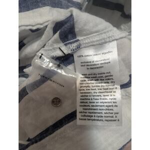 This Tommy Hilfiger women's shirt in size M features a classic blue striped design with a zip collar for a stylish and preppy look. Made from 100% cotton, this blouse is machine washable and suitable for various occasions including travel, weddings, parties, and casual/formal events. The long sleeves and collared neckline make it a versatile piece for all seasons, while the zipper accents add a trendy touch. With a regular fit and basic style, this Tommy Hilfiger shirt is a timeless wardrobe staple for any woman looking for a classic and sophisticated look.