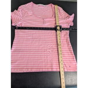 Tommy Hilfiger Shirt Women's Pink Striped V-neck Short Sleeves Tshirt Size XL