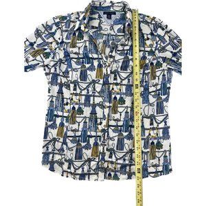 Tommy Hilfiger Shirt Womens Size Large Long Sleeve Tassel Print Button Front
