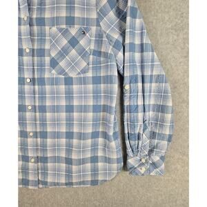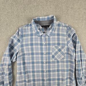 Tommy Hilfiger Shirt Womens Size XL Roll Tab Sleeves Blue Plaid Button Down