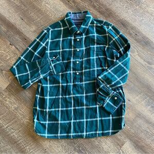Tommy Hilfiger Shirt Plaid Popover Half Button Down Top Green