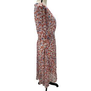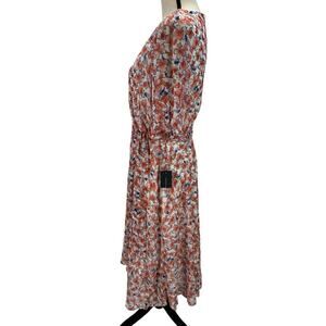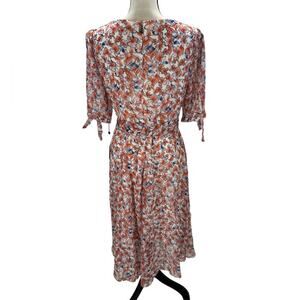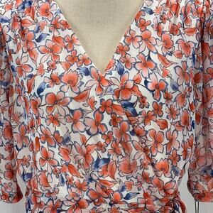 Tommy Hilfiger Short Sheer Sleeve Faux Wrap Floral Print Midi Dress - Red Blue
