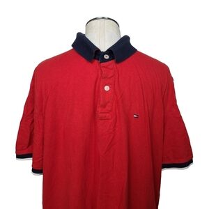 Tommy Hilfiger Short Sleeve Custom Fit Red Blue White Polo Shirt Men's XL