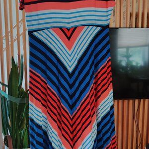 A cool multicolor maxi dress! Very soft fabric. Only worn once! Please keep in mind that it's rather long, I'm 5'7 and it's nearly hitting the floor on me without heels.