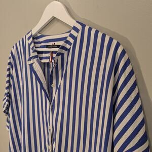 Tommy Hilfiger Short Sleeve Stripe Pullover Button Down Casual Brunch - Size M