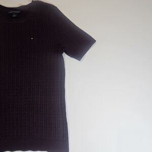 Tommy Hilfiger Short Sleeve Sweater Womens Medium Purple Cable Knit 90s Designer