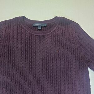 Add a touch of classic '90s designer charm to your wardrobe with this gorgeous Tommy Hilfiger cable knit short sleeve sweater. Featuring a rich purple hue and timeless knit design, this piece blends casual elegance with vintage flair—perfect for layering or wearing solo.