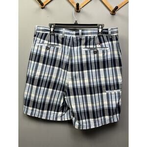 Tommy Hilfiger Shorts Mens Size 36 Blue Plaid Flat Front Casual Bermuda