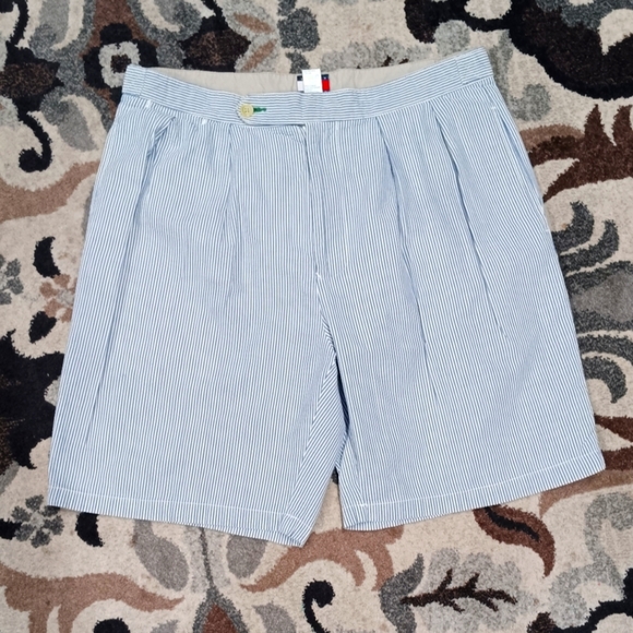 Tommy Hilfiger Shorts Men's Sz 36 Blue Seersucker Striped Chino VTG Casual