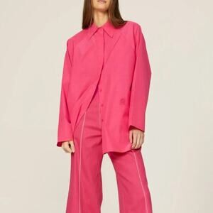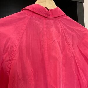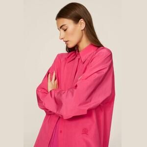Pink silk (62% Sustainable Viscose, 38% Viscose). Top. Collared neckline. Long sleeves. Front button closure.
