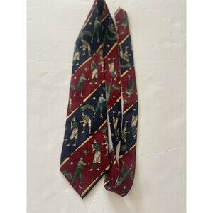 Elevate your style with this vintage Tommy Hilfiger silk necktie featuring a fun golfing theme. The colorful multicolor design showcases golfer Tommy in action and the logo accent adds a touch of sophistication. Made of 100% Italian silk, this classic length (57 in.-60 in.) and wide width tie is perfect for any golf enthusiast or fashion-forward individual.
