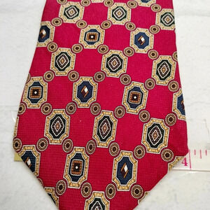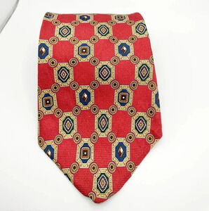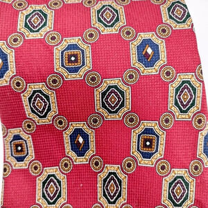 Tommy Hilfiger Silk Necktie Tie Red Green Cream Geometric Pattern Made in USA