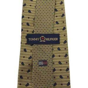 Tommy Hilfiger Paisley Print Silk Tie. Gold with navy paisley print & burgundy accent. Excellent used condition.