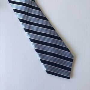 Tommy Hilfiger silk tie diagonal stripe navy and light blue. Approximate measurements 3.25” widest and 60” long