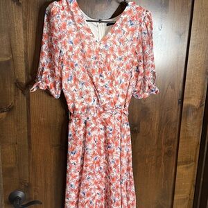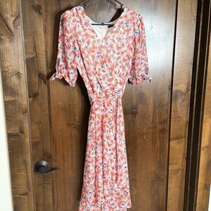 Tommy Hilfiger Size 10 dress midi floral red blue white Vneck Tie waist