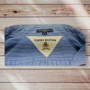 Tommy Hilfiger Size 17 long Sleeve Blue Stripe Men's Shirt