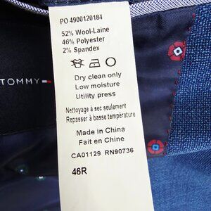 This Tommy Hilfiger Size 46R Mens Blue Sport Jacket Blazer is a stylish and versatile piece for any man's wardrobe. Made from a blend of polyester, spandex, and wool, the jacket features a classic notch lapel, four-button sleeve button style, and a two-back slit for added flair. The jacket is perfect for various occasions including parties, casual outings, and formal events. It also has inner pockets for convenience and is designed for a regular fit. Ideal for any season, this blazer is a timeless addition to your collection.