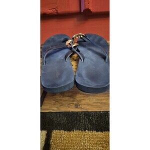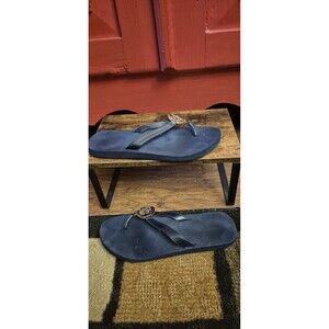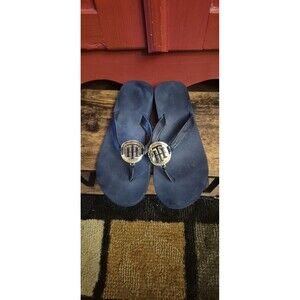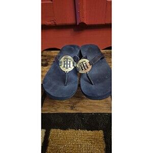 Tommy Hilfiger Size 7 Navy Blue Flip Flops Gold Logo Hardware PLEASE READ