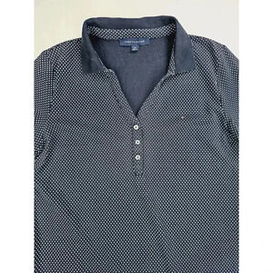 Tommy Hilfiger Size Large Women's Black White Polka Dot V Neck S/S Shirt Dress