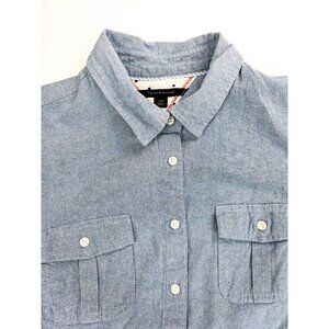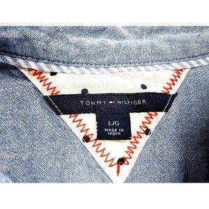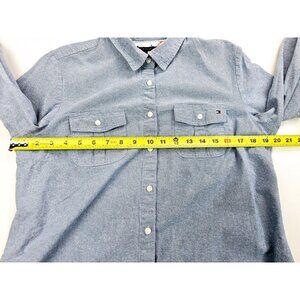 Tommy Hilfiger Size Large Women's Embroidered Pocket Logo Elbow Buttons Shirt