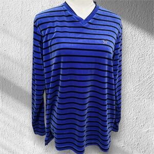 Tommy Hilfiger blue and black velour pullover. V-neck with Embroidered crest.