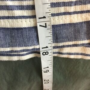 Tommy Hilfiger Womens Striped Chambray Mini Pencil Skirt Horizontal Stripes Back Zip Front Pockets Back Pockets Back Slit Mini Length Pencil Style