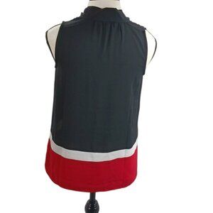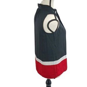 Tommy Hilfiger Sleeveless Blouse Womens XXS Black Red White Colorblock Tie Neck