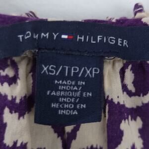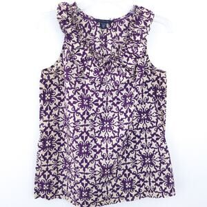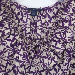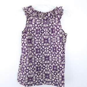 Tommy Hilfiger Sleeveless Blouse XS, Purple and Tan, Ruffle Neck, Damask Print