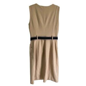 This Tommy Hilfiger sleeveless scuba crepe dress in size 4 features a hidden front zipper, a belt, and pockets. Made with 94% Polyester and 6% elastane, it is in excellent condition.