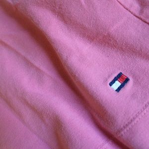 Awesome pink Tommy basic sleeveless tee. Great pink color for the spring/summer months. Flag detail on lower left hem. Women size XL, fits more like a large. Excellent condition with no rips, holes, etc.