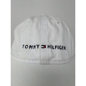Tommy Hilfiger Slideback Hat White & Blue Embroidered Spell Out Logo One Size