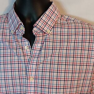 This red,white and blue gingham check, long sleeve, button down Tommy Hilfiger Slim Fit non-iron shirt is a size 17 (32-33) with a pit to pit measuring 24". 100% cotton. In excellent condition. All offers are welcome.