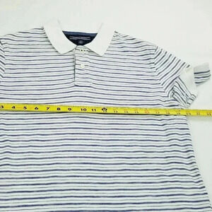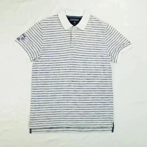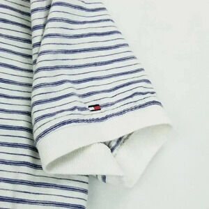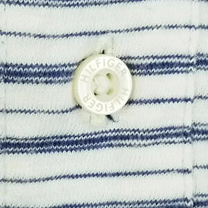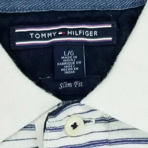 Tommy Hilfiger Slim Fit Sz Large Cotton White Blue Striped Embroidered NYC Logo